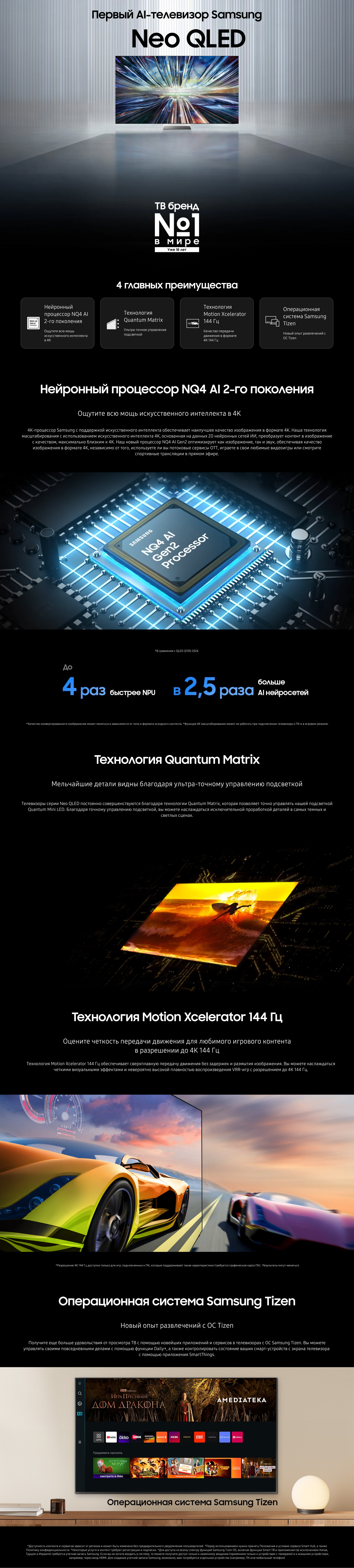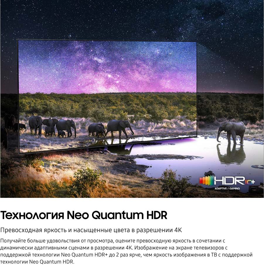 * Доступные функции и технические характеристики серии Neo QLED могут отличаться в зависимости от размера телевизора и региона.