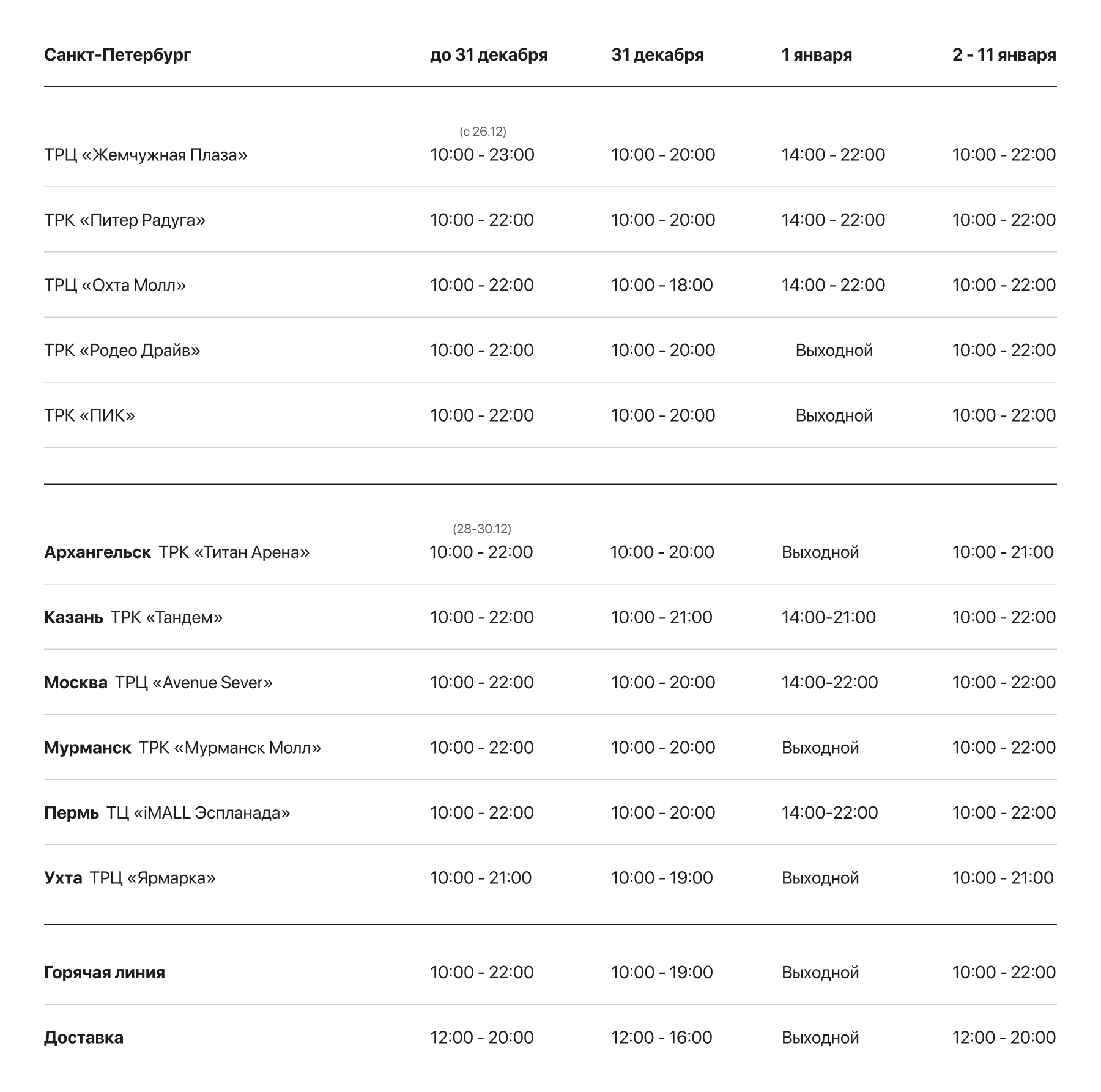 Со 2 января контакт‑центр работает в штатном режиме с 10:00 до 22:00.